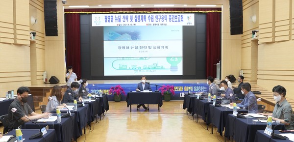 광명시(시장 박승원)가 지난 12일 시청 대회의실에서 ‘광명형 뉴딜 전략 및 실행계획’ 연구용역 중간보고회를 개최했다.