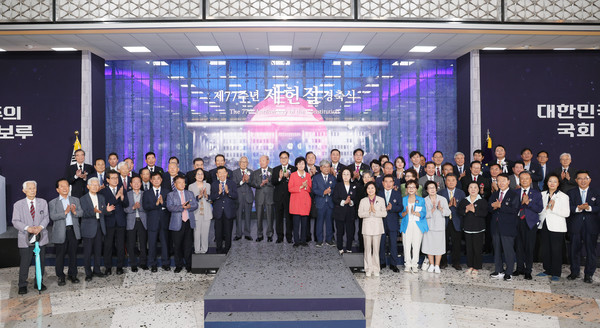 국회는 7월 17일 오전 10시 국회중앙홀에서 제77주년 제헌절 경축식을 개최했다. 경축식에는 의장단, 전직 국회의장, 4부요인·감사원장, 7개 원내정당, 헌정회, 제헌국회의원 유족회, 행정부, 지자체, 주한외교사절 등과 맨손으로 장갑차를 막은 김동현님 등 12월 3일 계엄 당일 국회 앞을 지킨 시민 5명이 참석했다.